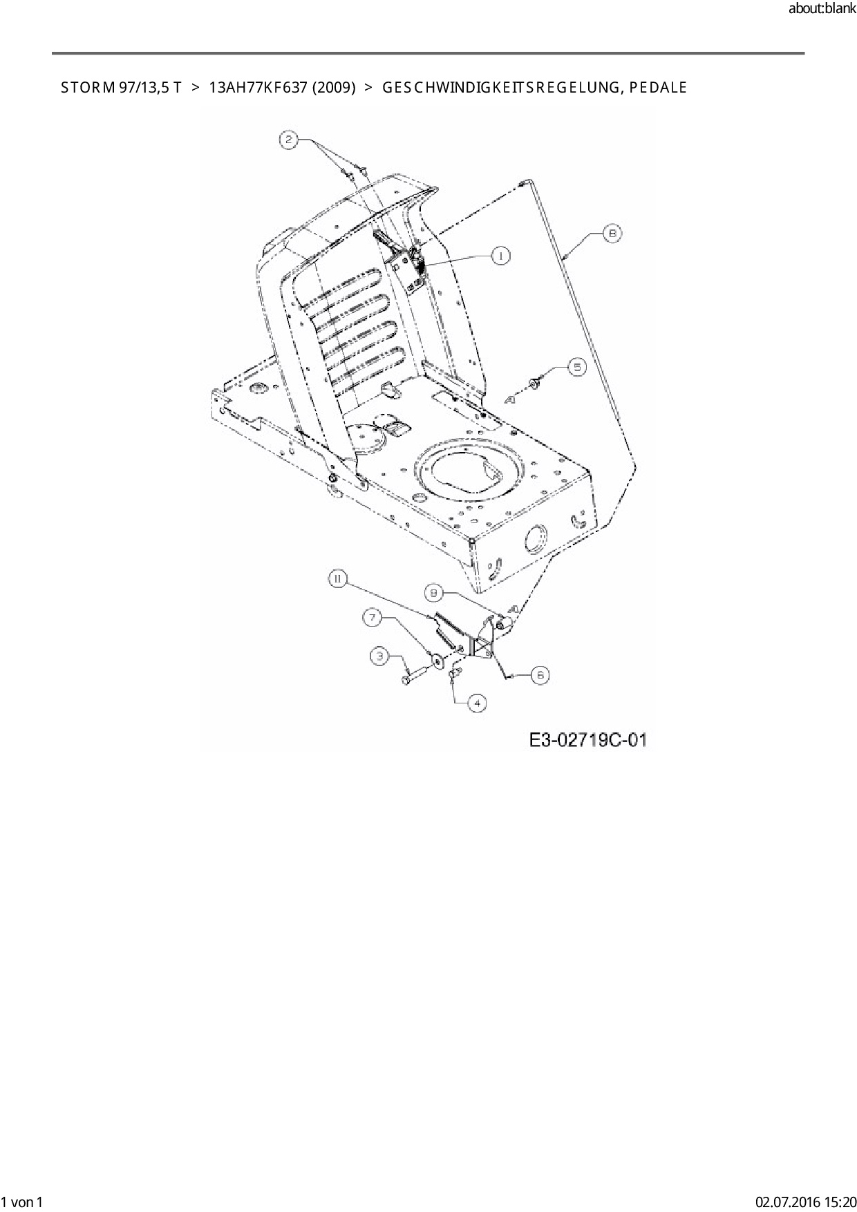 Ersatzteile für Rasentraktor EFCO Storm 97/13,5 T aus der Zeichnung Geschwindigkeitsregelung, Pedale: