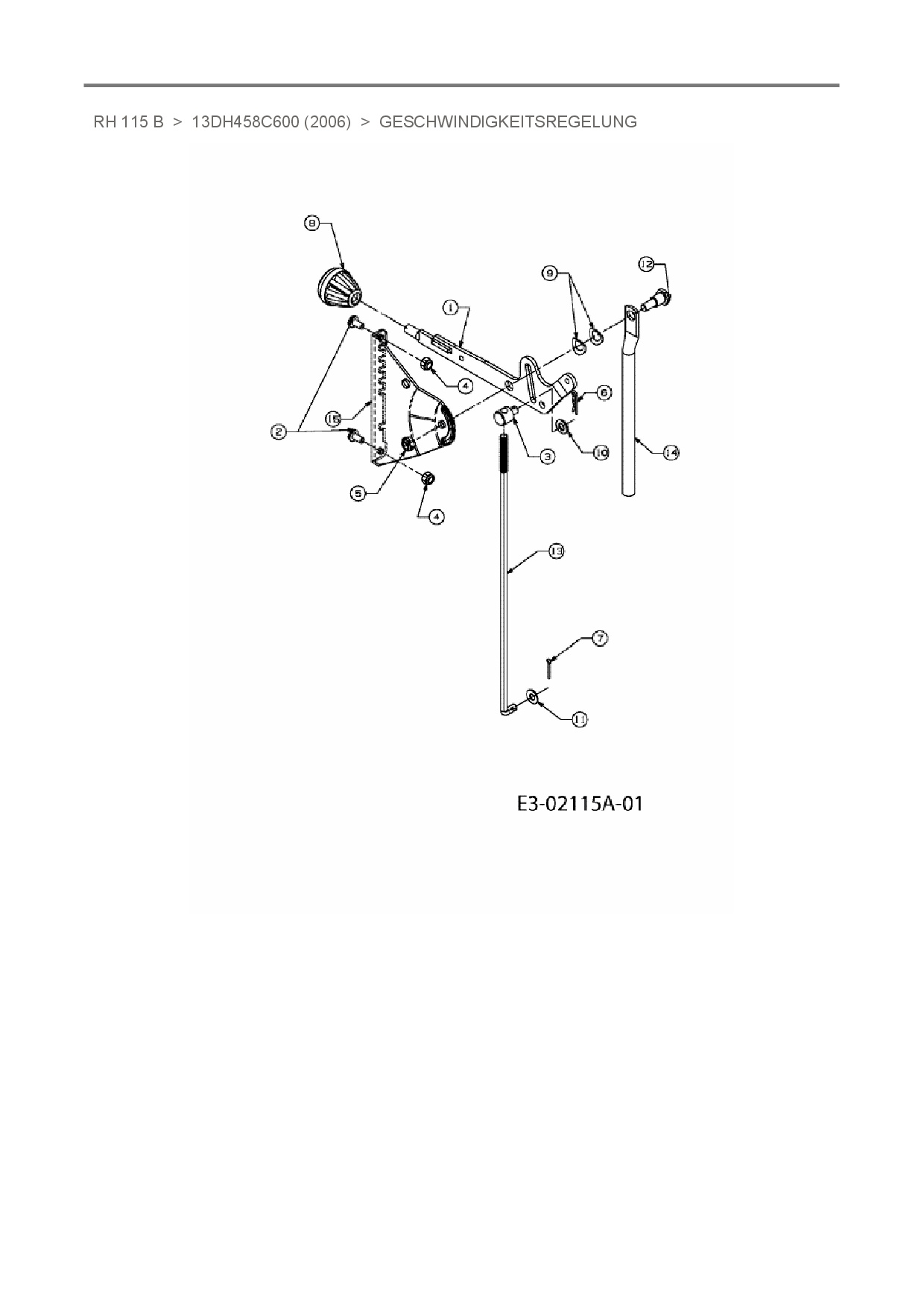 Ersatzteile für Rasentraktor MTD RH 115 B aus der Zeichnung Geschwindigkeitsregelung: