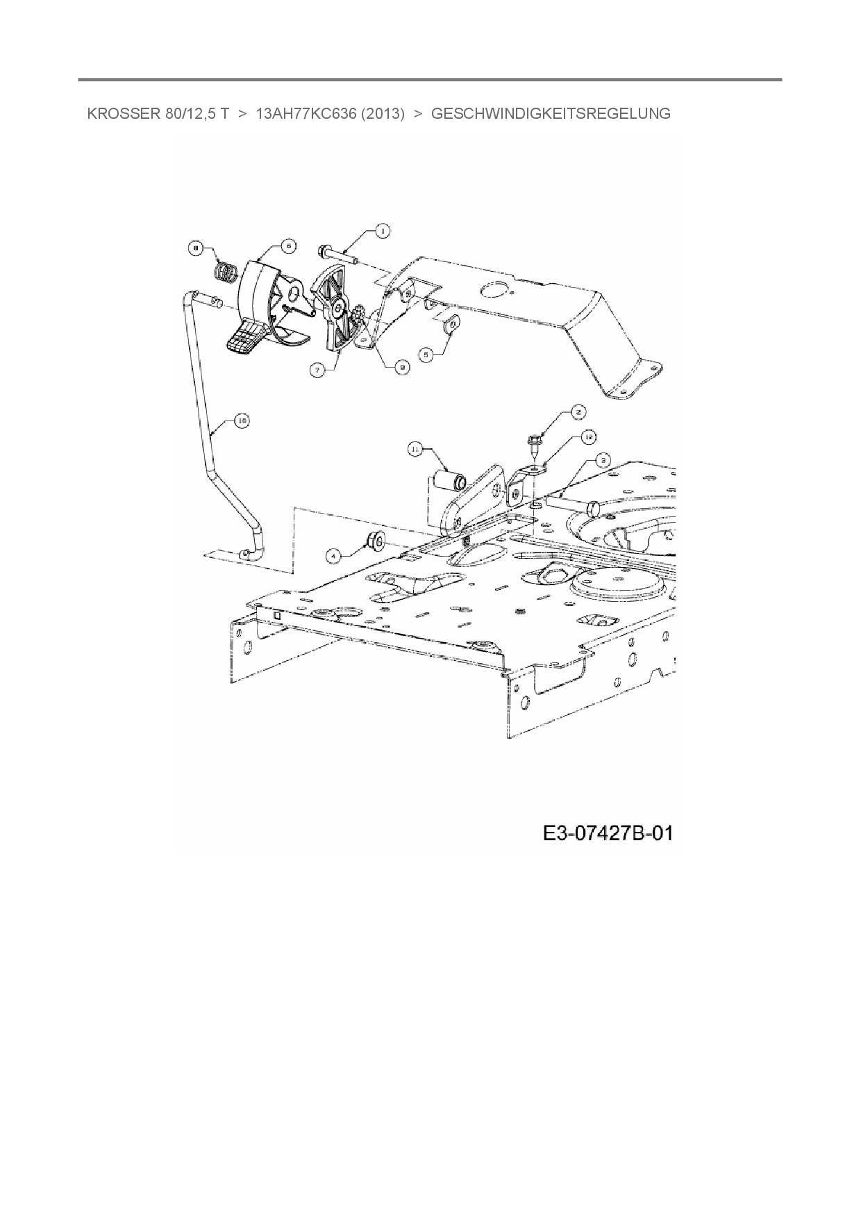 Zeichnung für Oleo-Mac Rasentraktor Krosser 80/12,5 T mit der Geräte-Artikelnr. 13AH77KC636 ab Baujahr 2013: