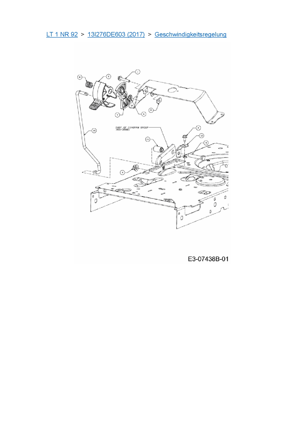 Zeichnung für Cub Cadet Rasentraktor LT 1 NR 92 mit der Geräte-Artikelnr. 13I276DE603 ab Baujahr 2017: