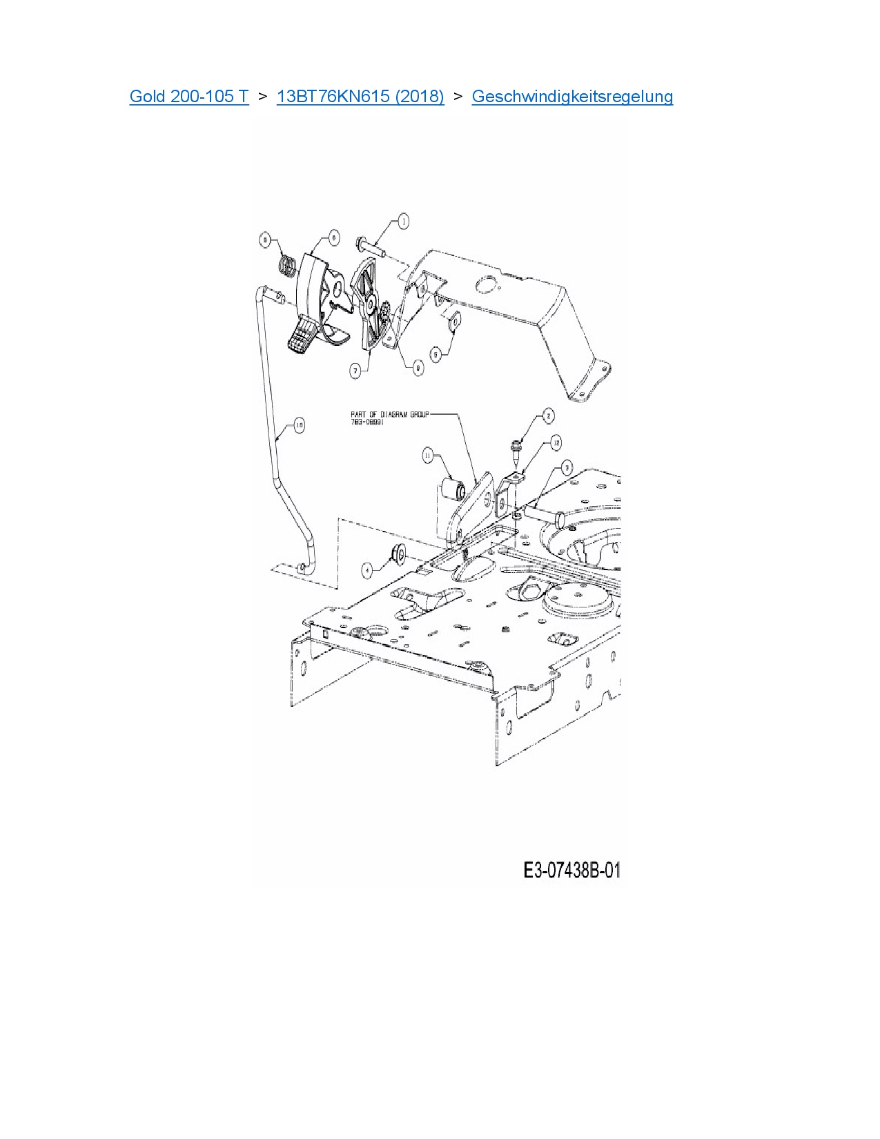 Ersatzteile für Rasentraktor MTD Gold 200-105 T aus der Zeichnung Geschwindigkeitsregelung: