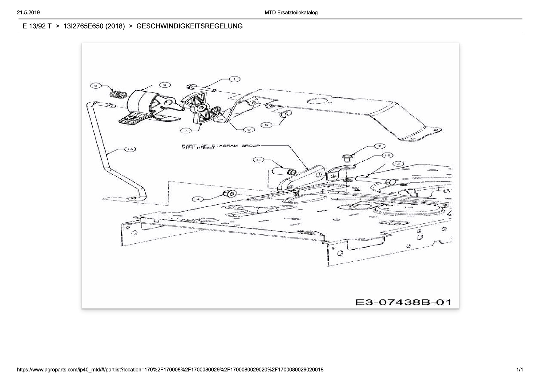Ersatzteile für Rasentraktor Wolf-Garten Expert E 13/92 T aus der Zeichnung Geschwindigkeitsregelung: