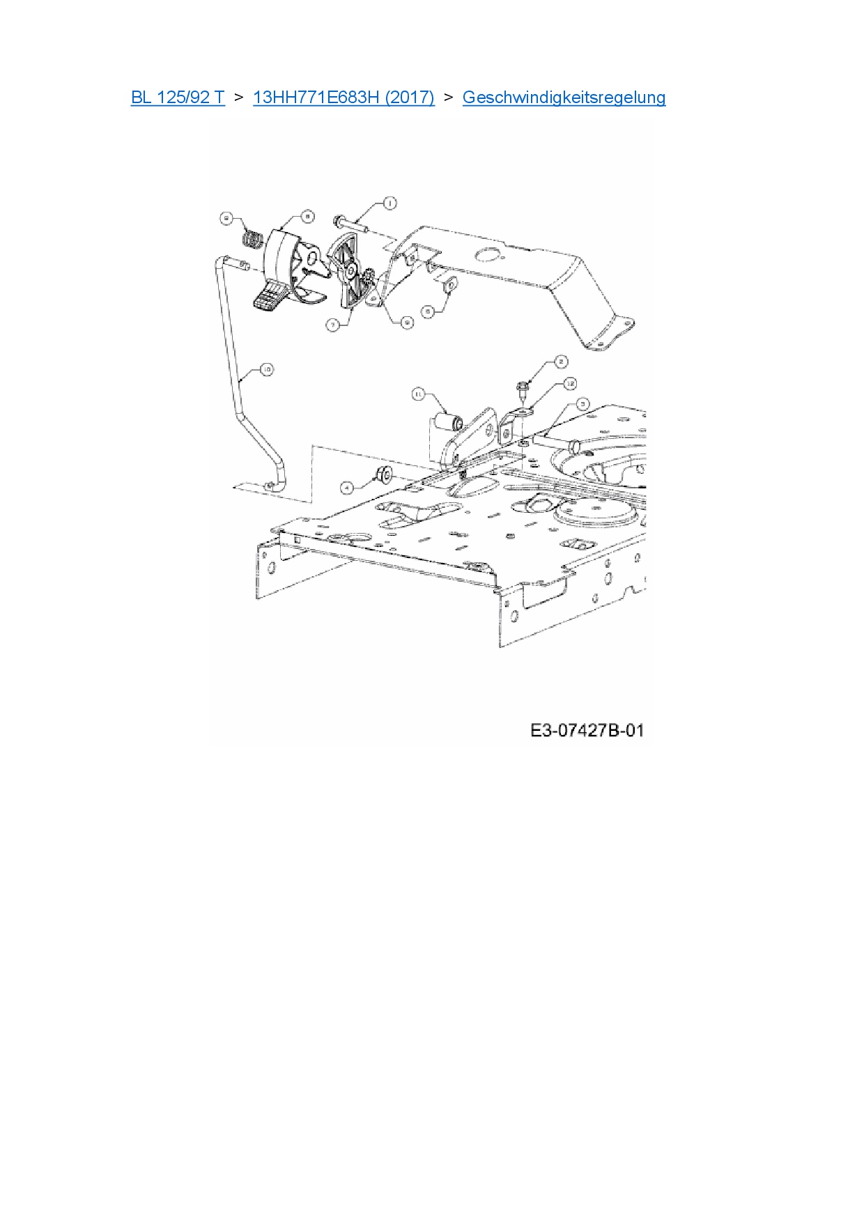 Ersatzteile für Rasentraktor Black-Line BL 125/92 T aus der Zeichnung Geschwindigkeitsregelung: