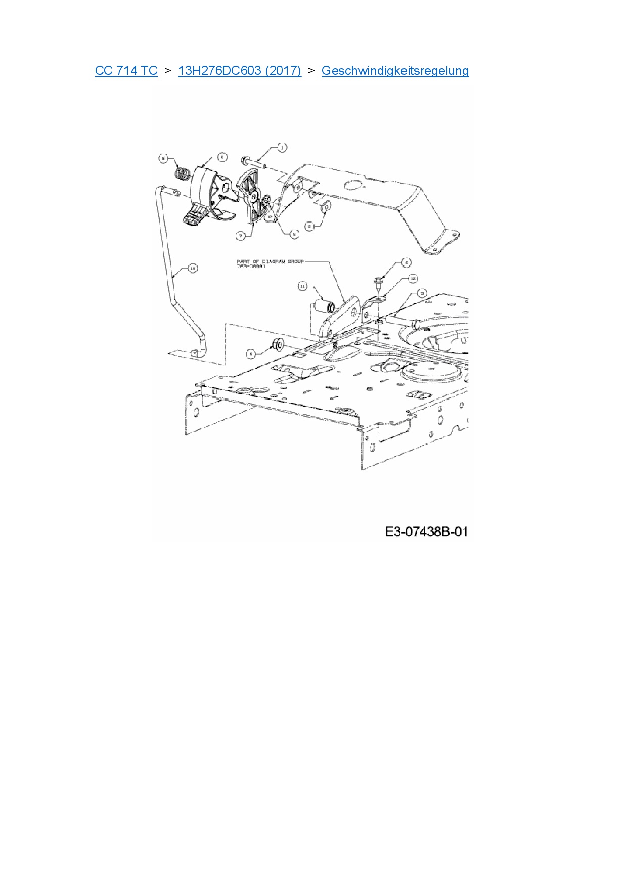 Ersatzteile für Rasentraktor Cub Cadet CC 714 TC aus der Zeichnung Geschwindigkeitsregelung: