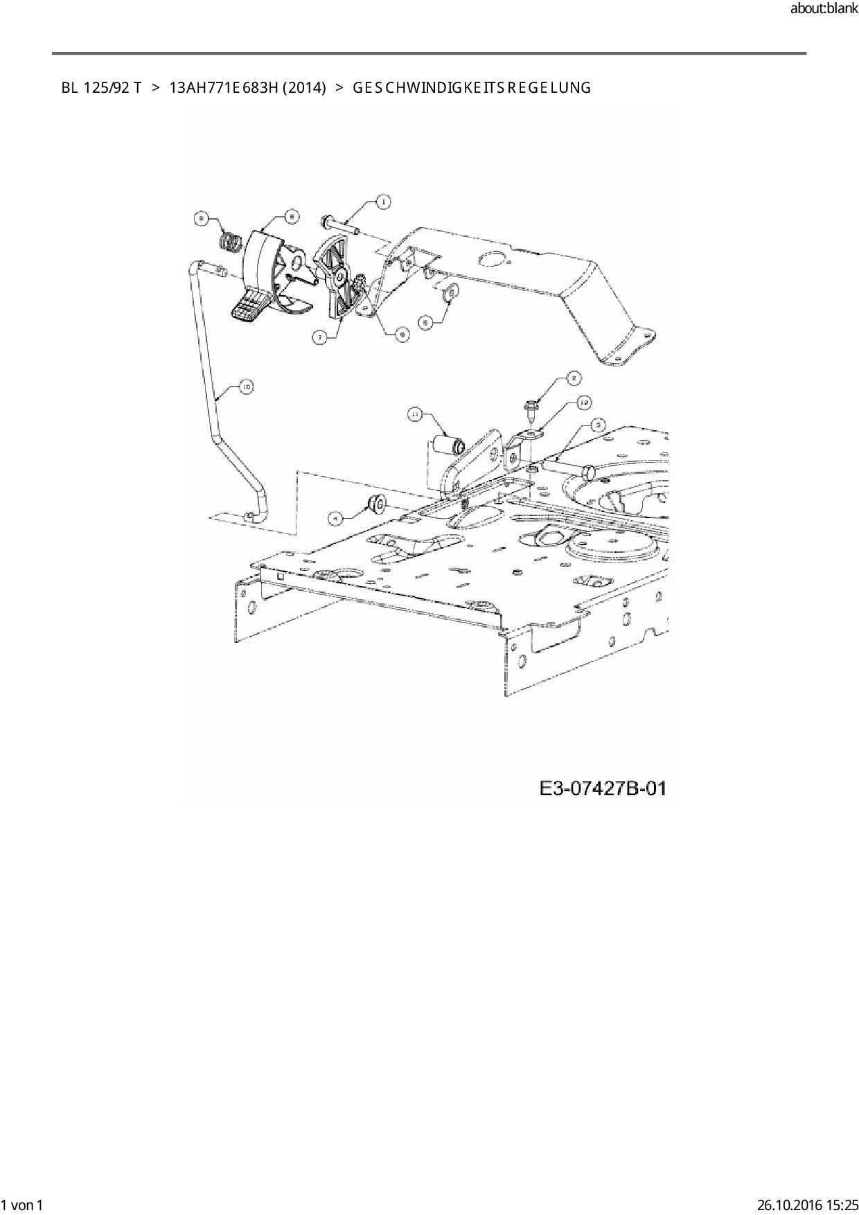 Ersatzteile für Rasentraktor Black-Line BL 125/92 T aus der Zeichnung Geschwindigkeitsregelung: