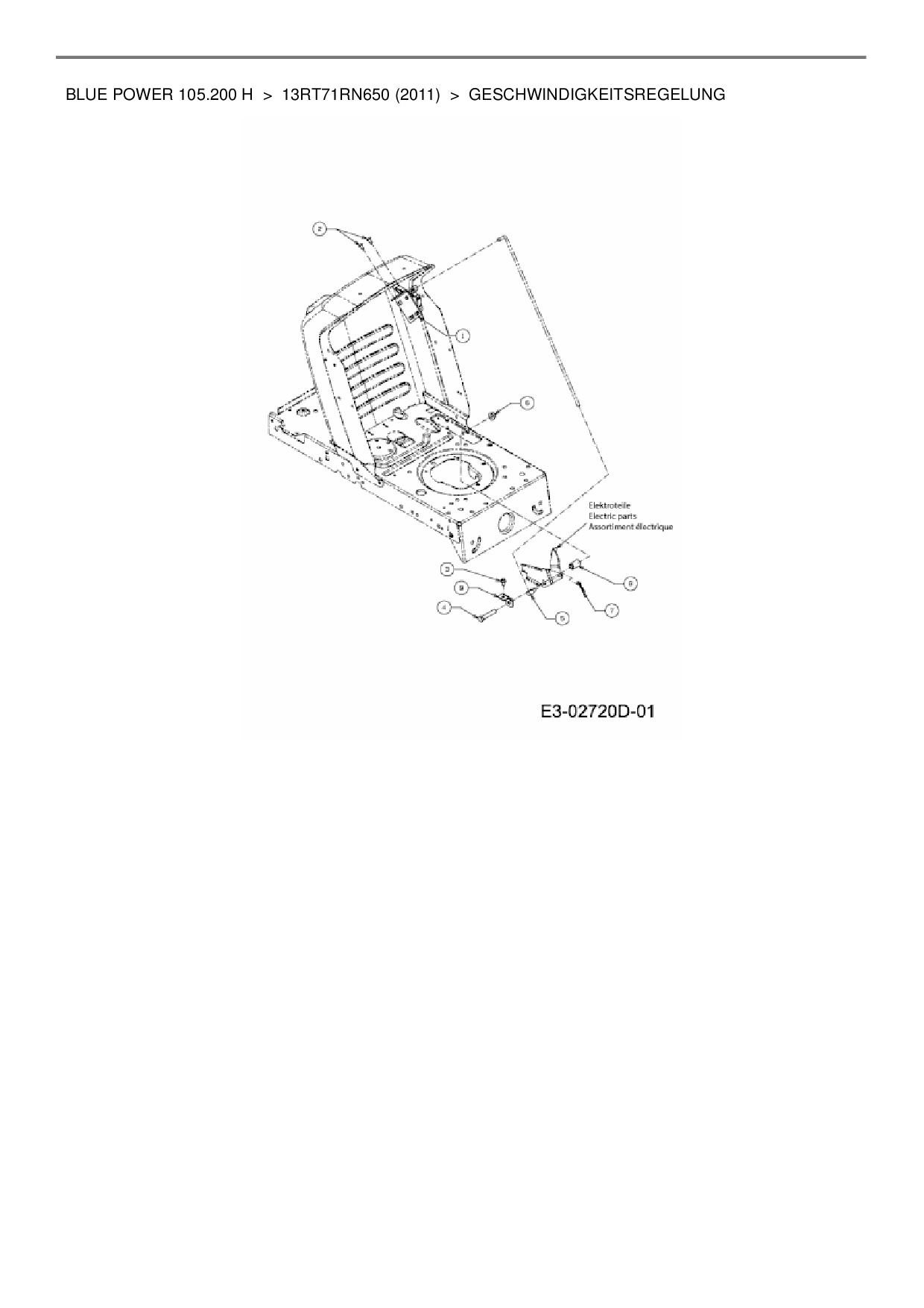 Ersatzteile für Rasentraktor Wolf-Garten Blue Power 105.200 H aus der Zeichnung Geschwindigkeitsregelung: