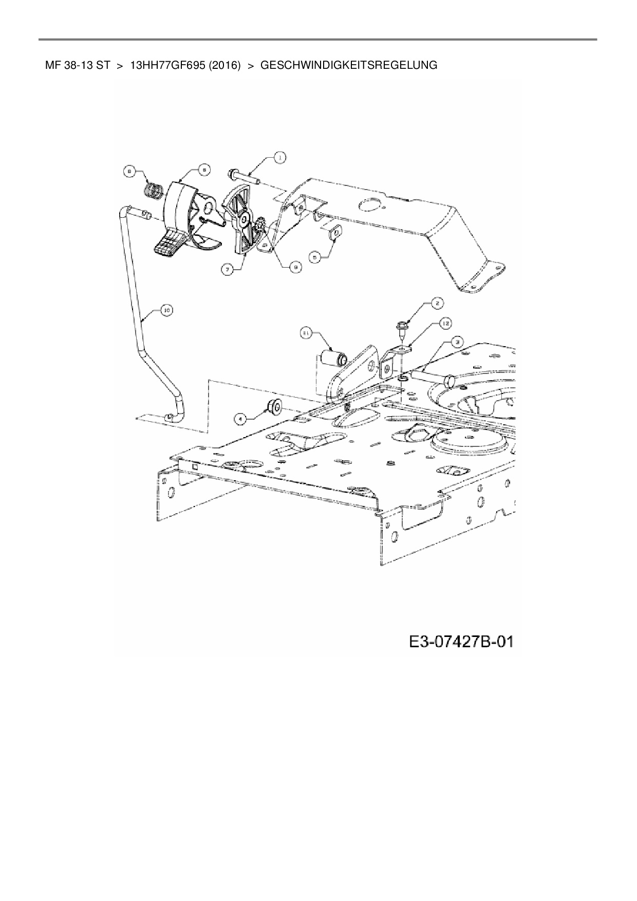 Ersatzteile für Rasentraktor Massey Ferguson MF 38-13 ST aus der Zeichnung Geschwindigkeitsregelung: