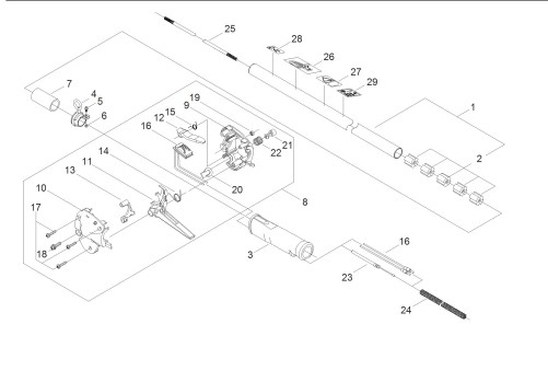 Zeichnung von shindaiwa Motorsensen Kreiselscheren T3410KSVYD Gestänge, Gashebel: