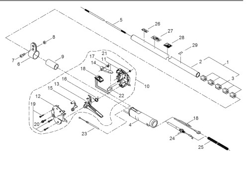 Zeichnung von shindaiwa Motorsensen T-Serie,Motorsensen mit Rundgriff T220 Gestänge, Gashebel: