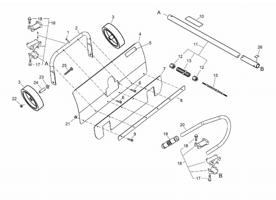 Zeichnung von ECHO Kombisystem PAS-2400 PAS-PT - PAS-Vertikutierer Gestänge, Griff, Schutz: