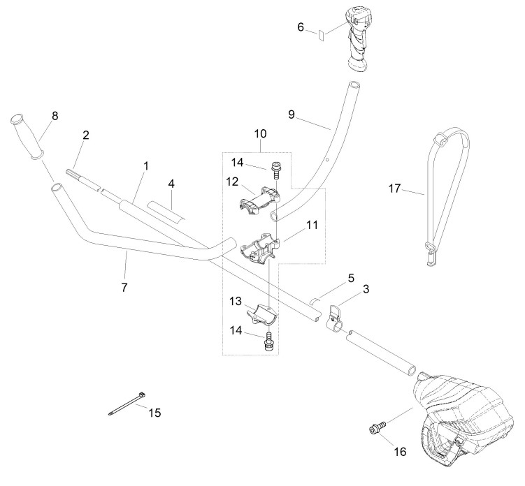 Zeichnung von ECHO Akku-Geräte ESR-2300U Gestänge, Griff, Tragegurt: