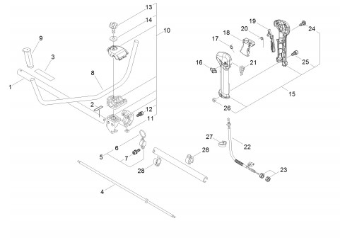 Zeichnung von ECHO Motorsensen Kreiselscheren EKS-230-30UN Gestänge, U-Griff, Gasgriff: