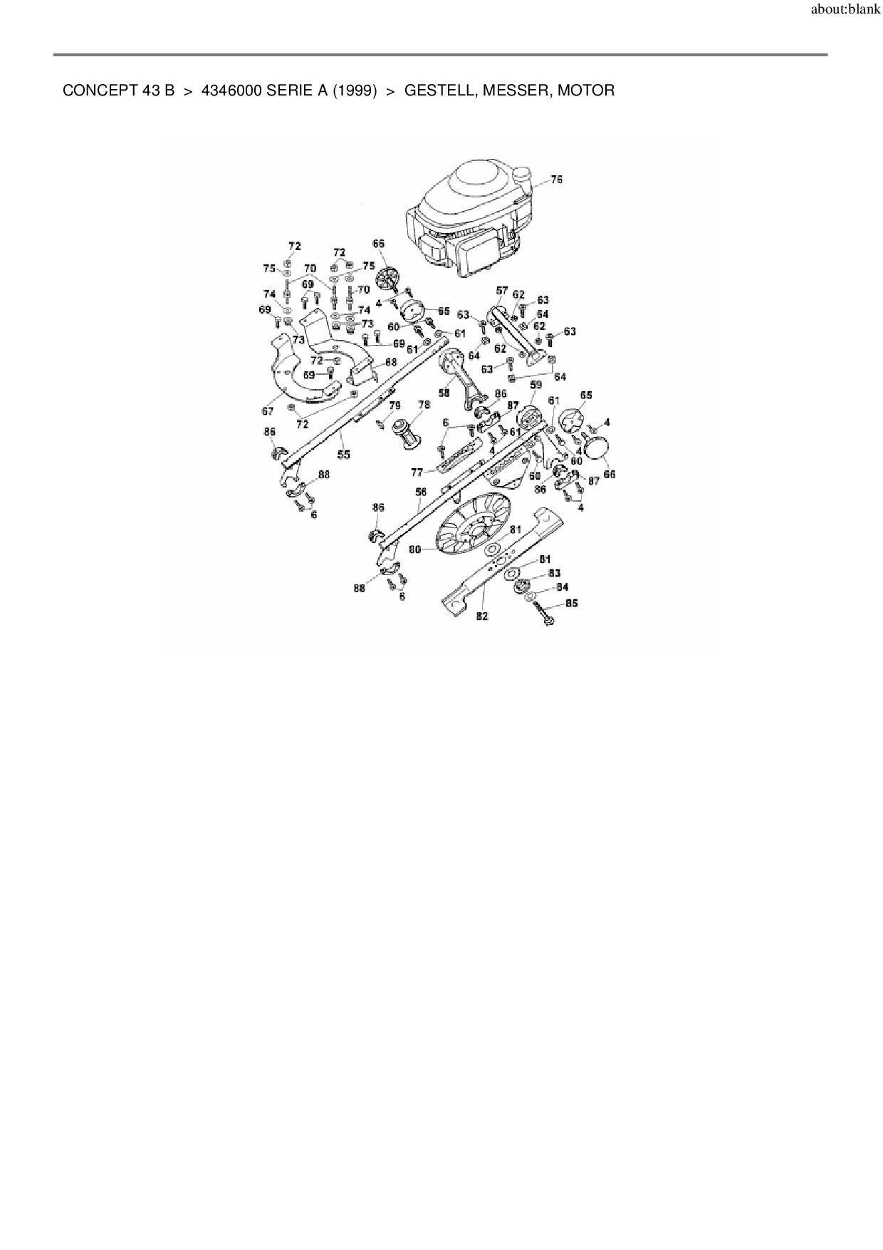 Ersatzteile für Motormäher Wolf-Garten Concept 43 B aus der Zeichnung Gestell, Messer, Motor: