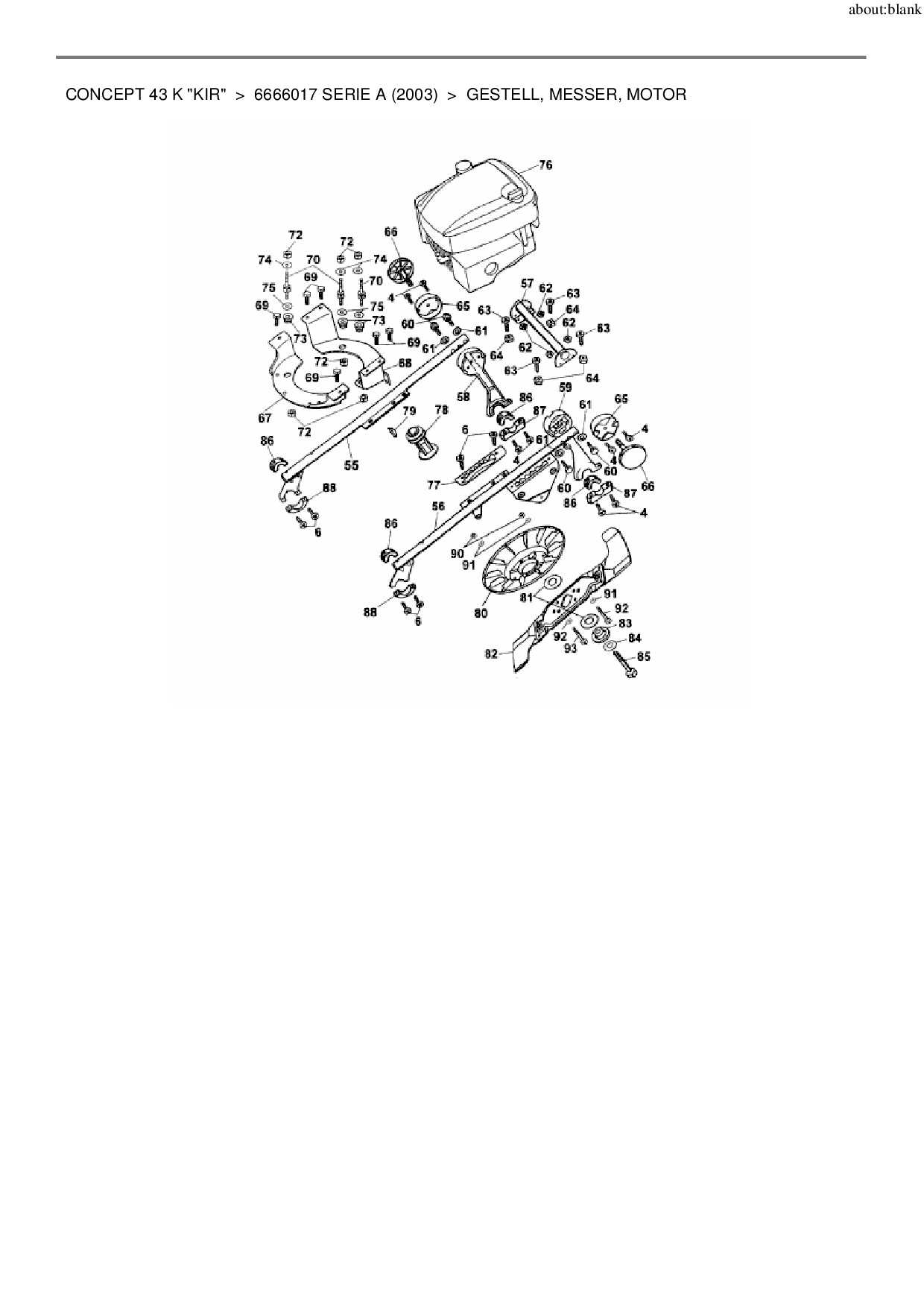 Download Ersatzteil-Zeichnung Wolf-Garten Concept 43 K "KIR" Zeichnung Gestell, Messer, Motor (PDF-Format)