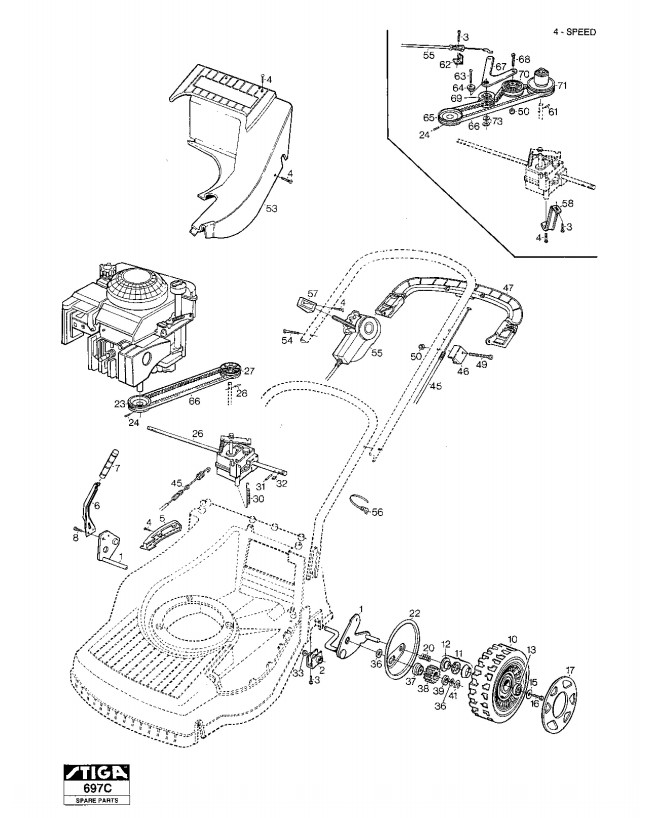 Zeichnung von Stiga Benzin-Rasenmäher ab 2000 Turbo 55SE 4-Speed (Geräte Nr 12-9489-15):