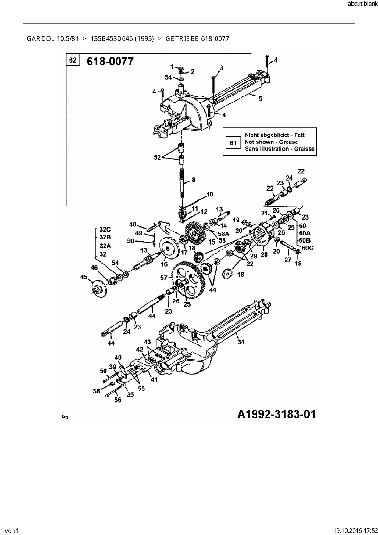 Ersatzteile für Rasentraktor Bauhaus Gardol 10.5/81 aus der Zeichnung Getriebe 618-0077: