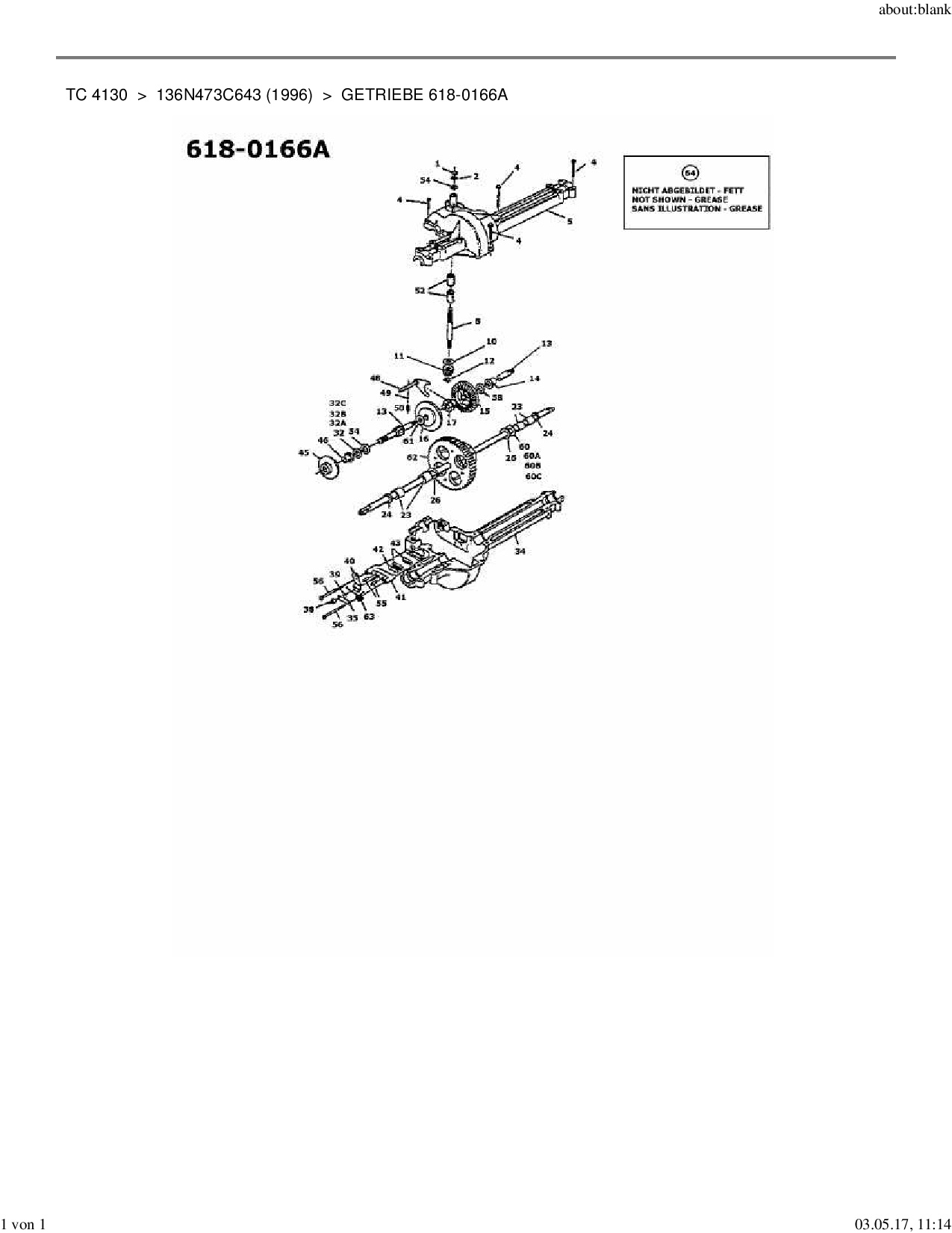 Ersatzteile für Rasentraktor Yard-Man TC 4130 aus der Zeichnung Getriebe 618-0166A: