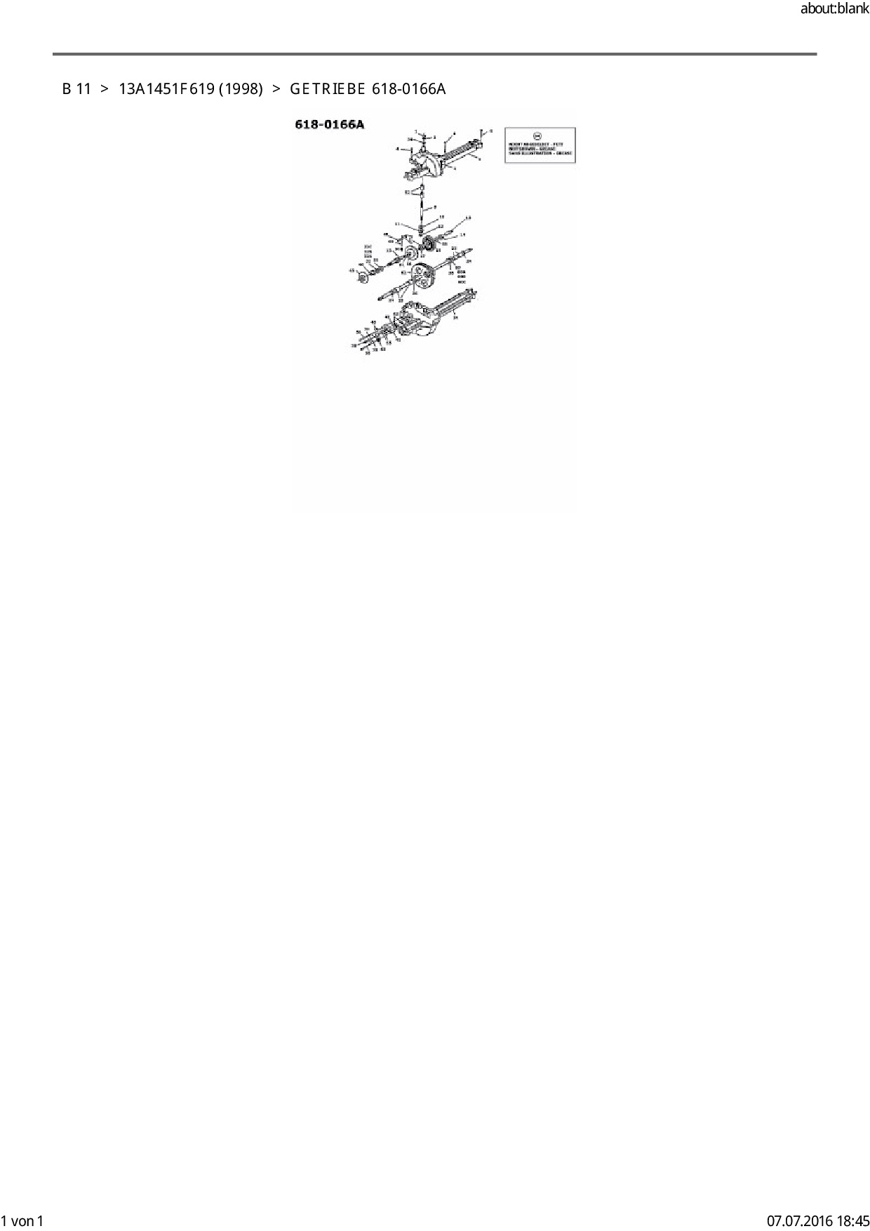Ersatzteile für Rasentraktor FLEURELLE B 11 aus der Zeichnung Getriebe 618-0166A: