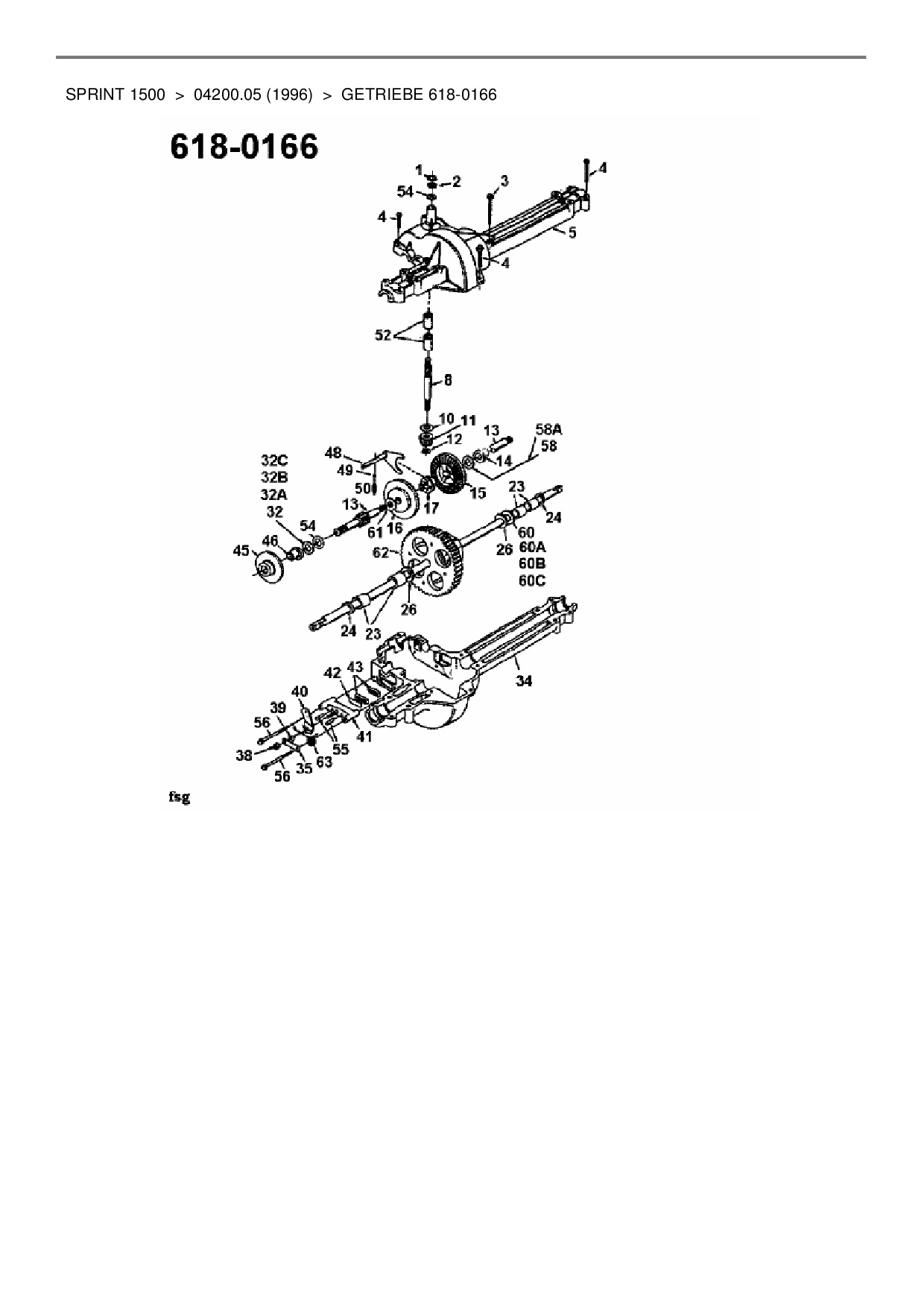 Ersatzteile für Rasentraktor Gutbrod Sprint 1500 aus der Zeichnung Getriebe 618-0166:
