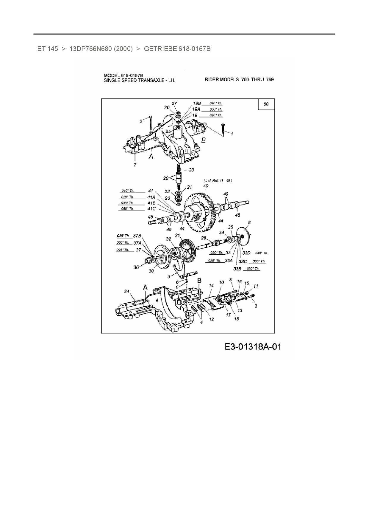 Ersatzteile für Rasentraktor White ET 145 aus der Zeichnung Getriebe 618-0167B: