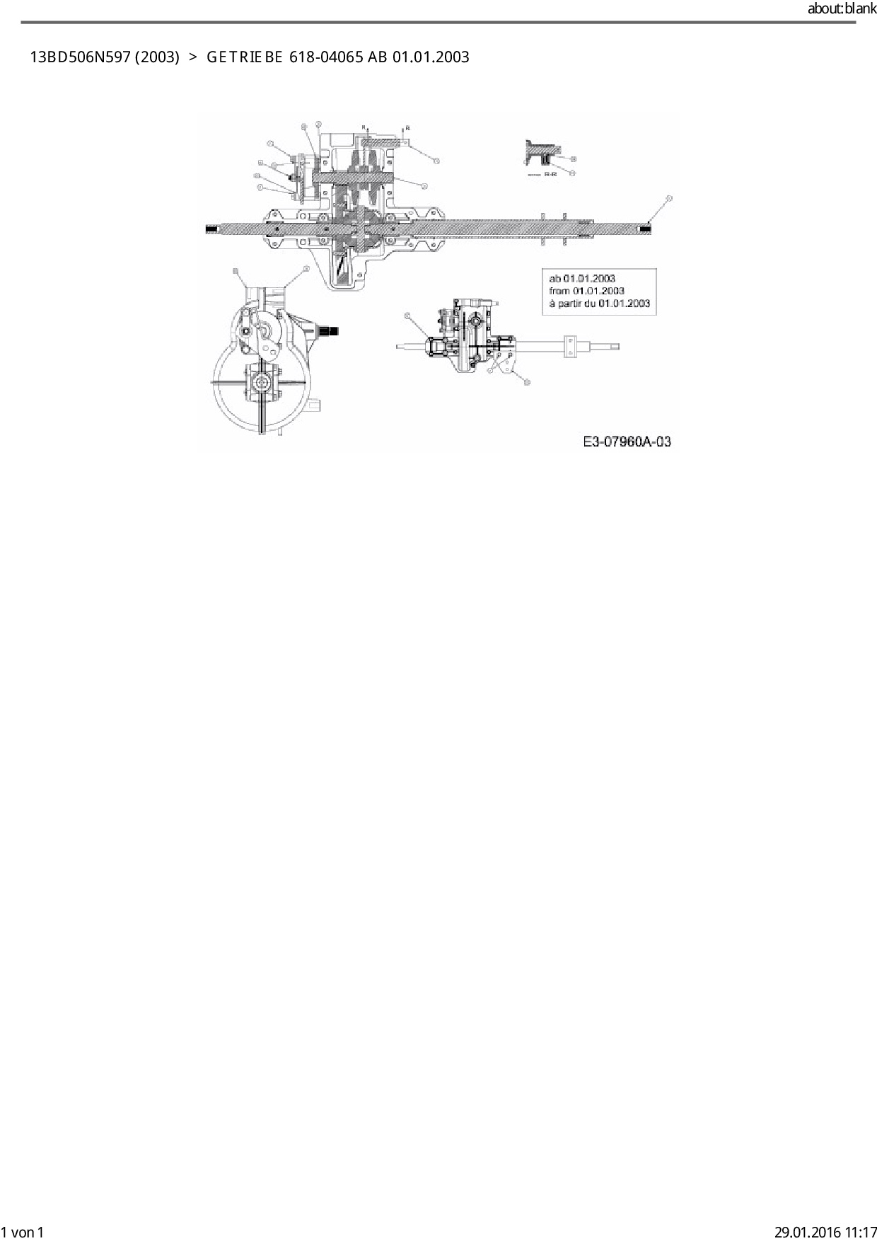 Ersatzteile für Rasentraktor Columbia D 506 NR aus der Zeichnung Getriebe 618-04065 ab 01.01.2003: