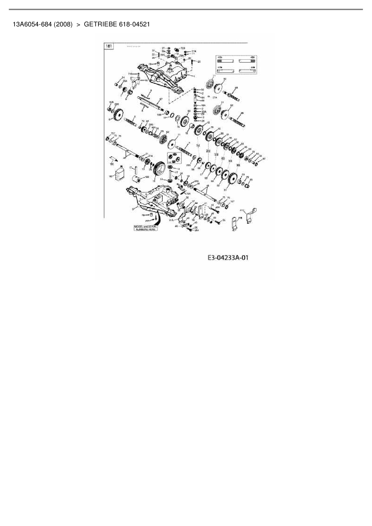 Ersatzteile für Rasentraktor Bolens BL 60 M aus der Zeichnung Getriebe 618-04521: