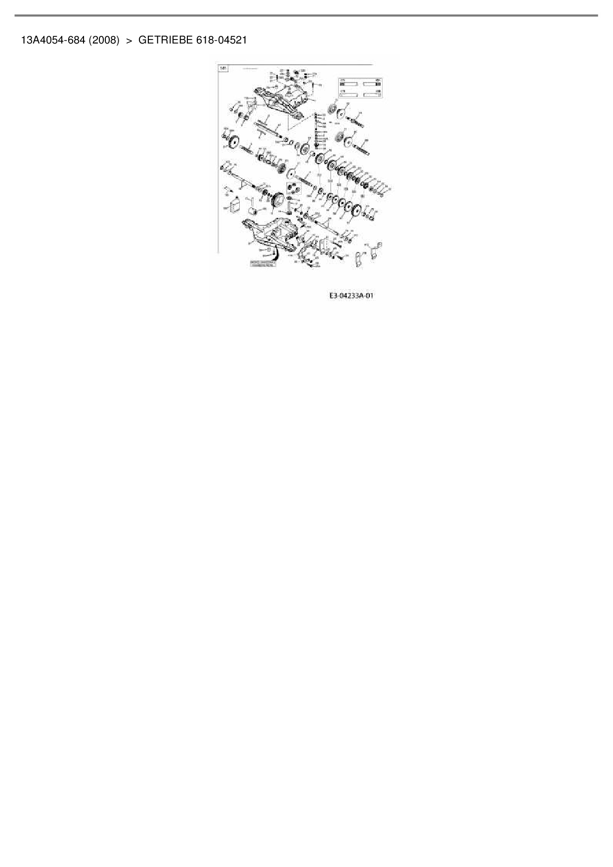 Ersatzteile für Rasentraktor Bolens BL 60 ME aus der Zeichnung Getriebe 618-04521: