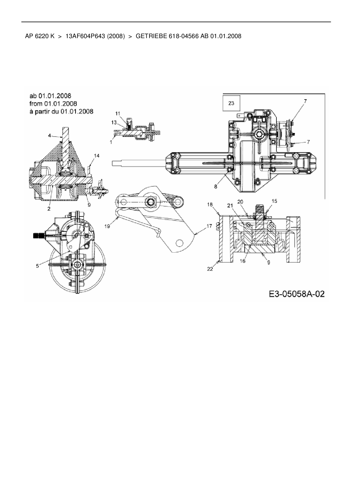 Ersatzteile für Rasentraktor Yard-Man AP 6220 K aus der Zeichnung Getriebe 618-04566 ab 01.01.2008: