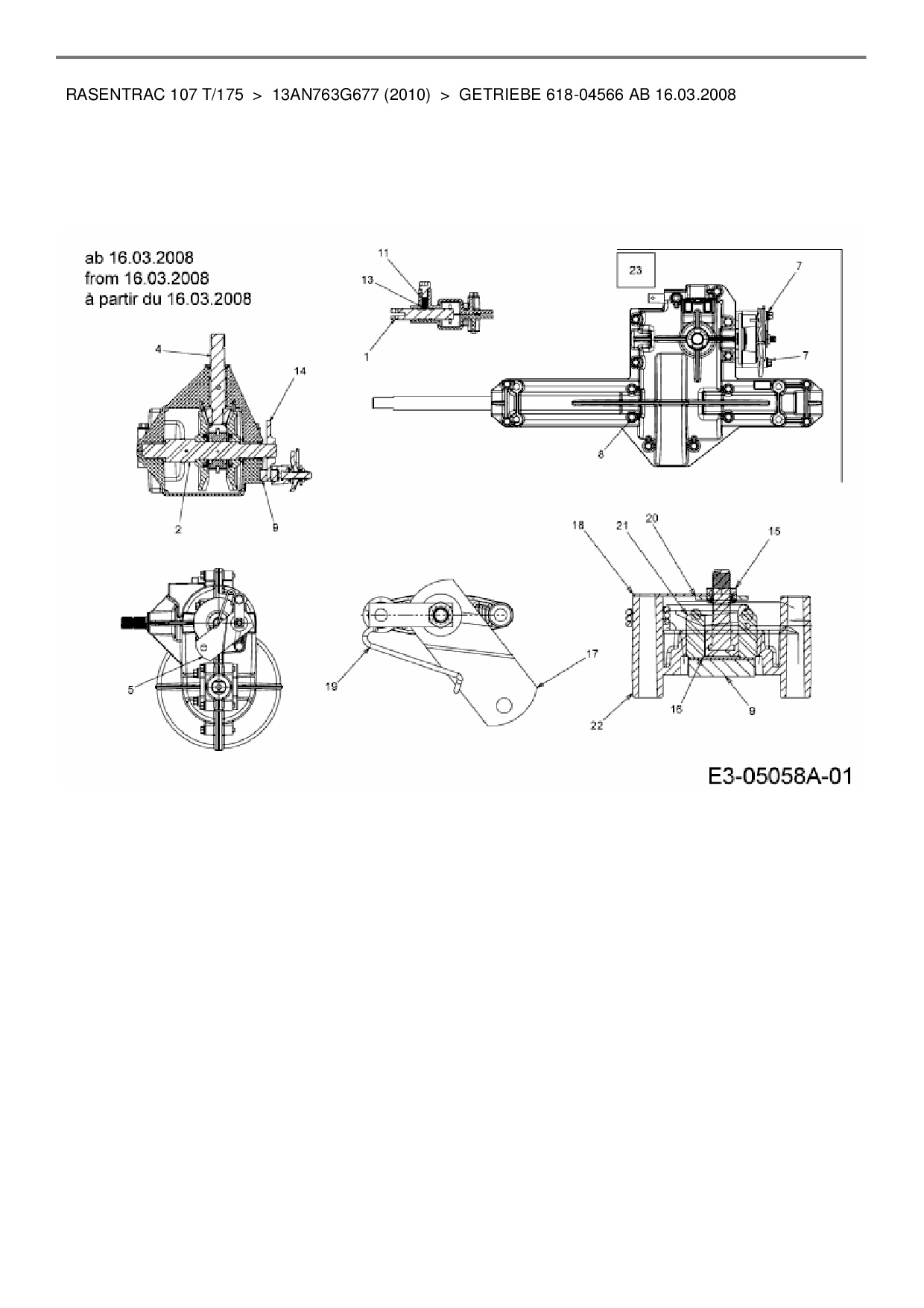 Ersatzteile für Rasentraktor Kts Rasentrac 107 T/175 aus der Zeichnung Getriebe 618-04566 ab 16.03.2008: