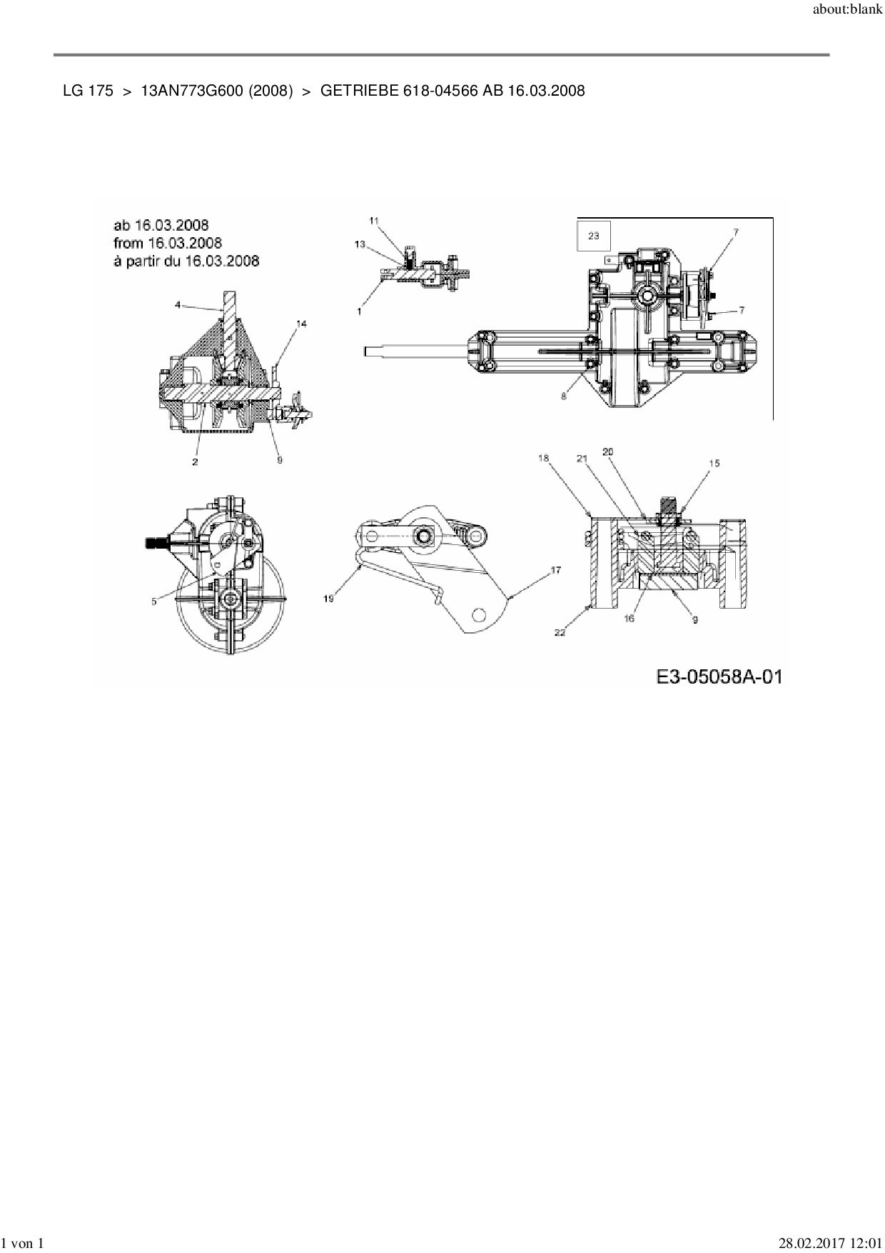 Ersatzteile für Rasentraktor MTD LG 175 aus der Zeichnung Getriebe 618-04566 ab 16.03.2008: