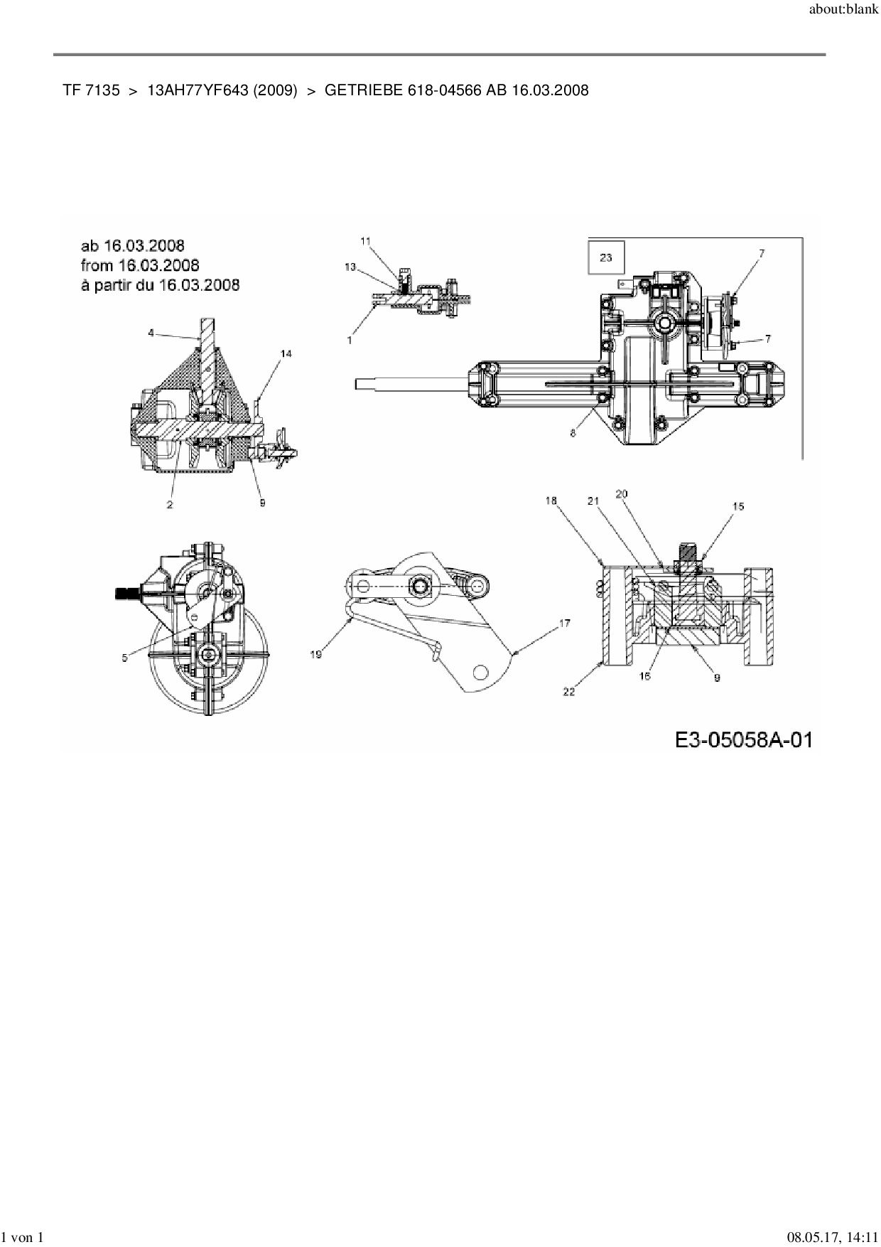 Ersatzteile für Rasentraktor Yard-Man TF 7135 aus der Zeichnung Getriebe 618-04566 ab 16.03.2008: