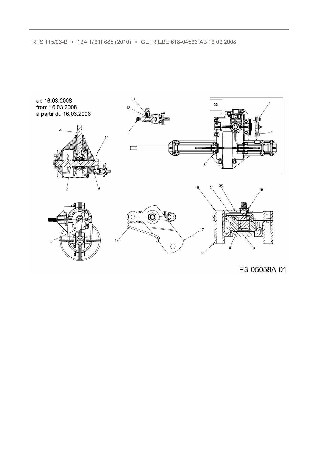 Ersatzteile für Rasentraktor Sunline RTS 115/96-B aus der Zeichnung Getriebe 618-04566 ab 16.03.2008: