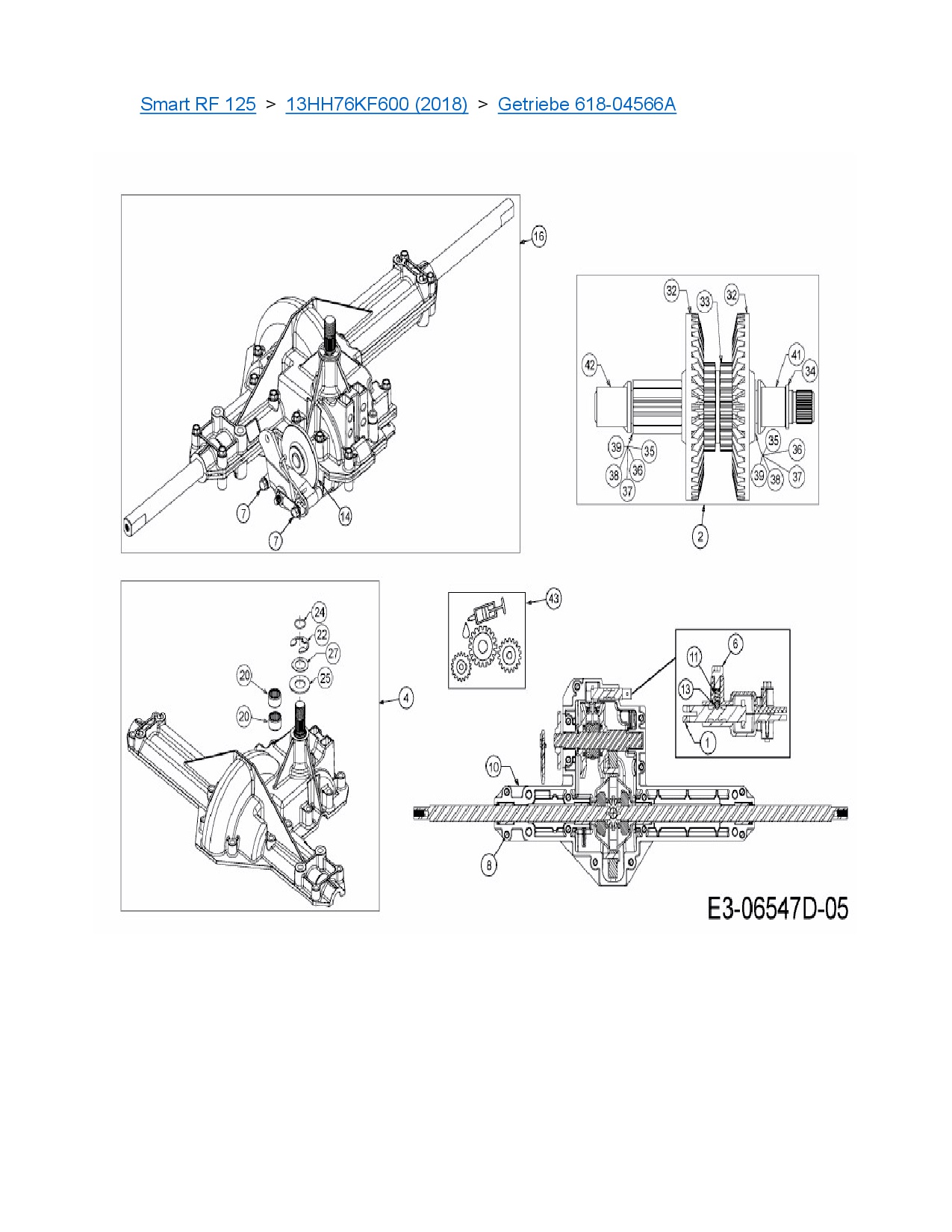 Ersatzteile für Rasentraktor MTD Smart RF 125 aus der Zeichnung Getriebe 618-04566A: