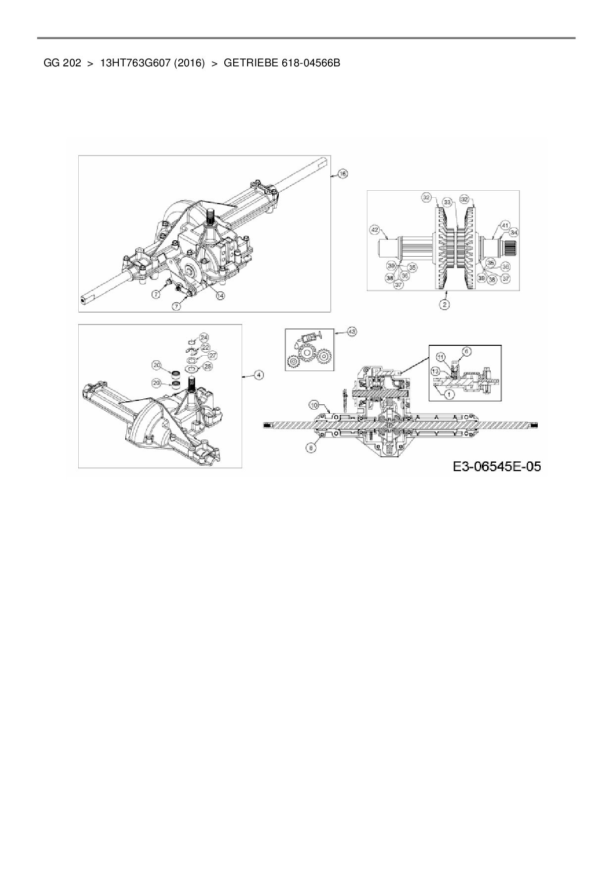 Ersatzteile für Rasentraktor Blisar GG 202 aus der Zeichnung Getriebe 618-04566B: