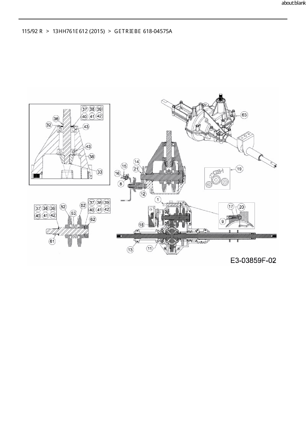 Ersatzteile für Rasentraktor MTD 115/92 R aus der Zeichnung Getriebe 618-04575A: