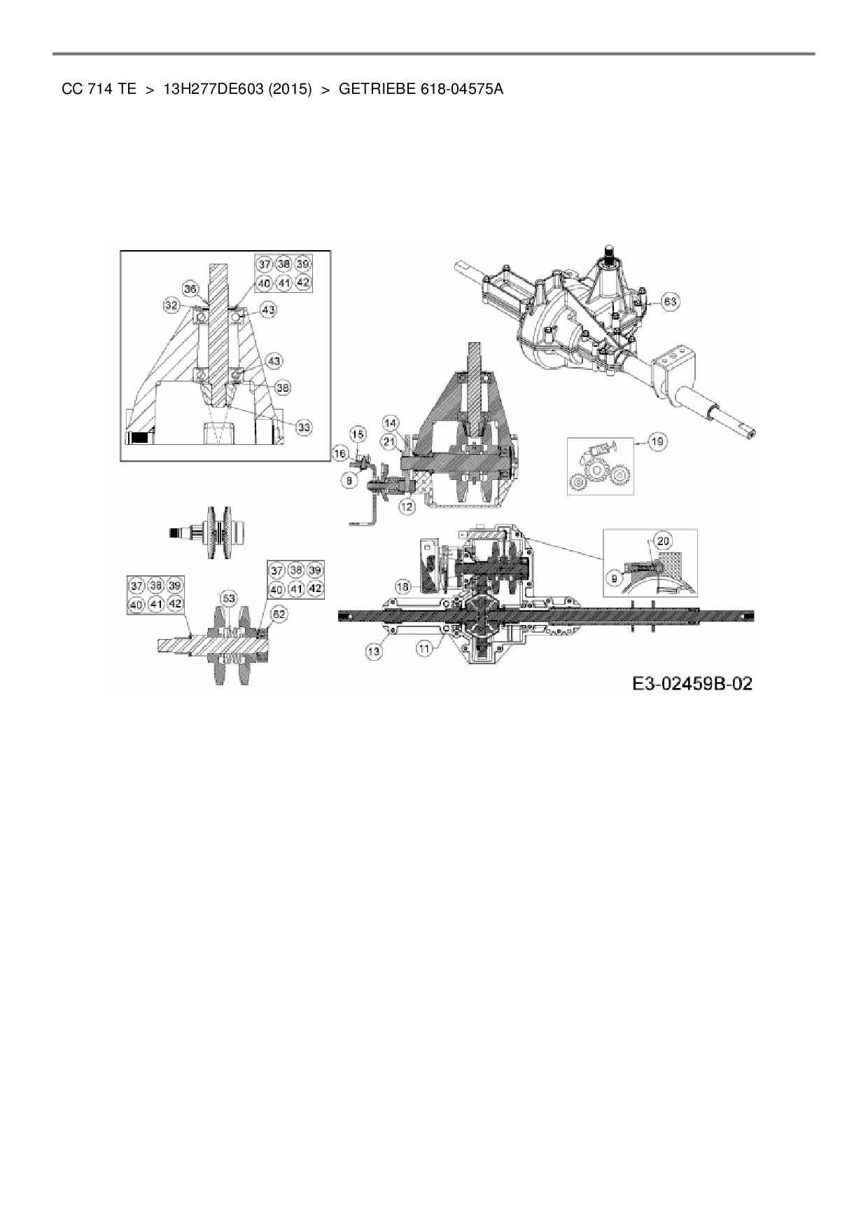 Ersatzteile für Rasentraktor Cub Cadet CC 714 TE aus der Zeichnung Getriebe 618-04575A: