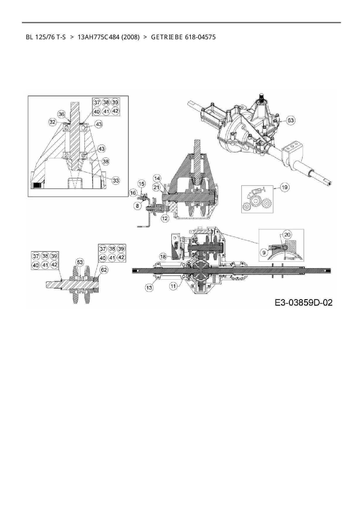 Ersatzteile für Rasentraktor Bolens BL 125/76 T-S aus der Zeichnung Getriebe 618-04575: