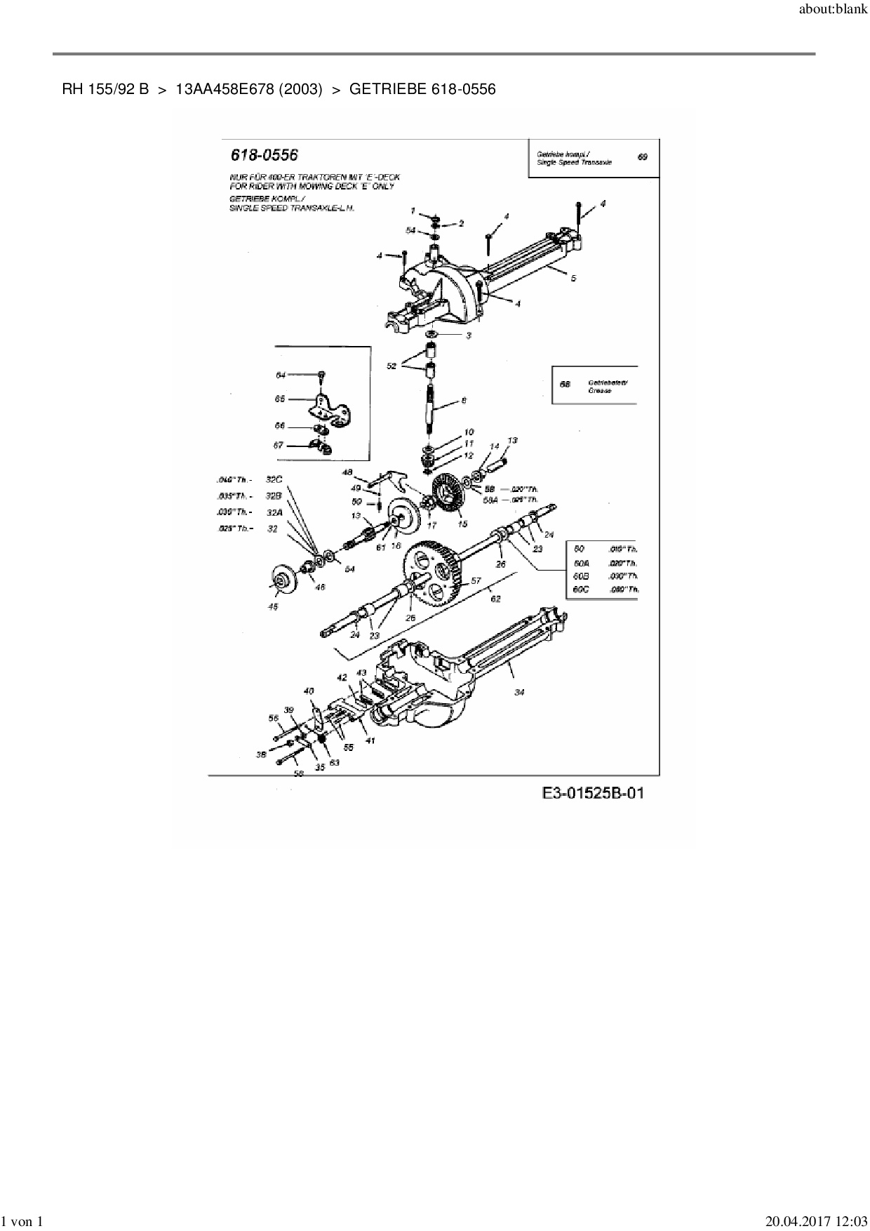 Download Ersatzteil-Zeichnung MTD RH 155/92 B Zeichnung Getriebe 618-0556 (PDF-Format)