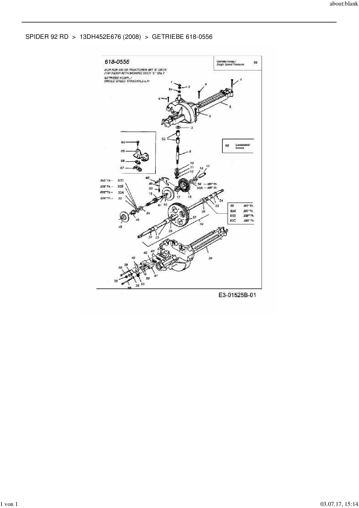 Ersatzteile für Rasentraktor MTD Spider 92 RD aus der Zeichnung Getriebe 618-0556: