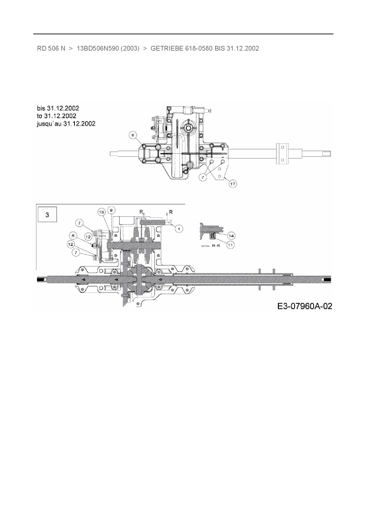 Ersatzteile für Rasentraktor White RD 506 N aus der Zeichnung Getriebe 618-0580 bis 31.12.2002: