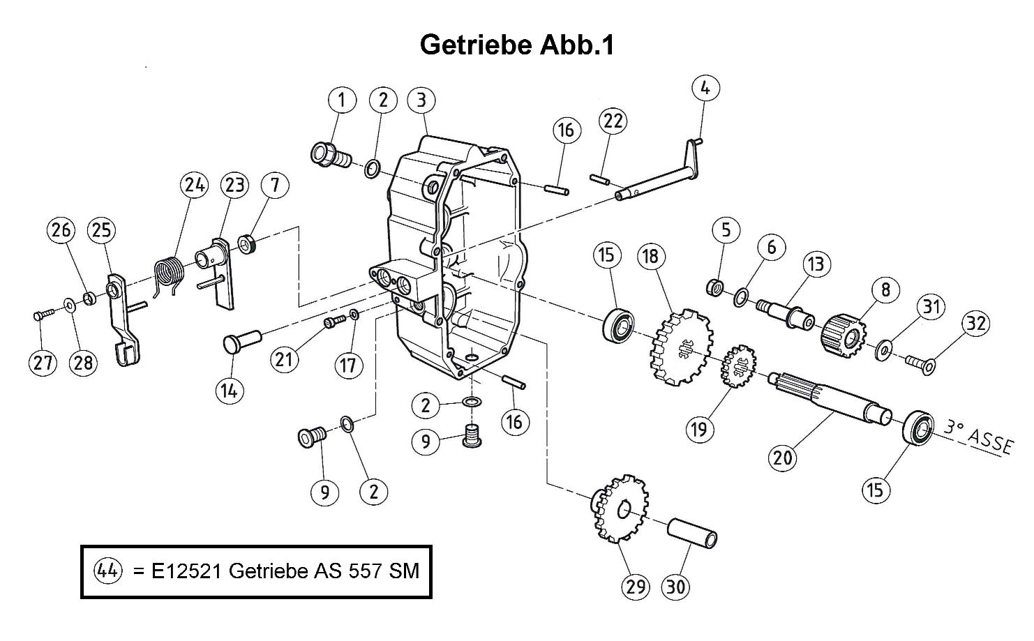Hier finden Sie alle Ersatzteile von AS-Motor Schlegelmäher AS 557 SM ab FNr. 025212090001 aus dem Zeichnungsblatt Getriebe Abb.1: