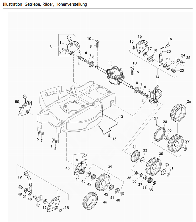 Zeichnung Sabo Rasenmäher Profi-Rasenmäher 52-PRO S A EDV-NR.SA1649 Getriebe, Höhenverstellung, Räder:
