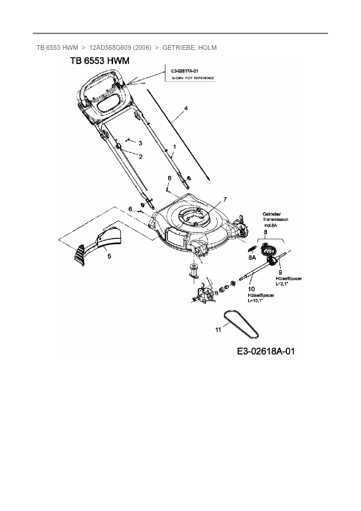 Ersatzteile für Motormäher mit Antrieb Troy-Bilt TB 6553 HWM aus der Zeichnung Getriebe, Holm: