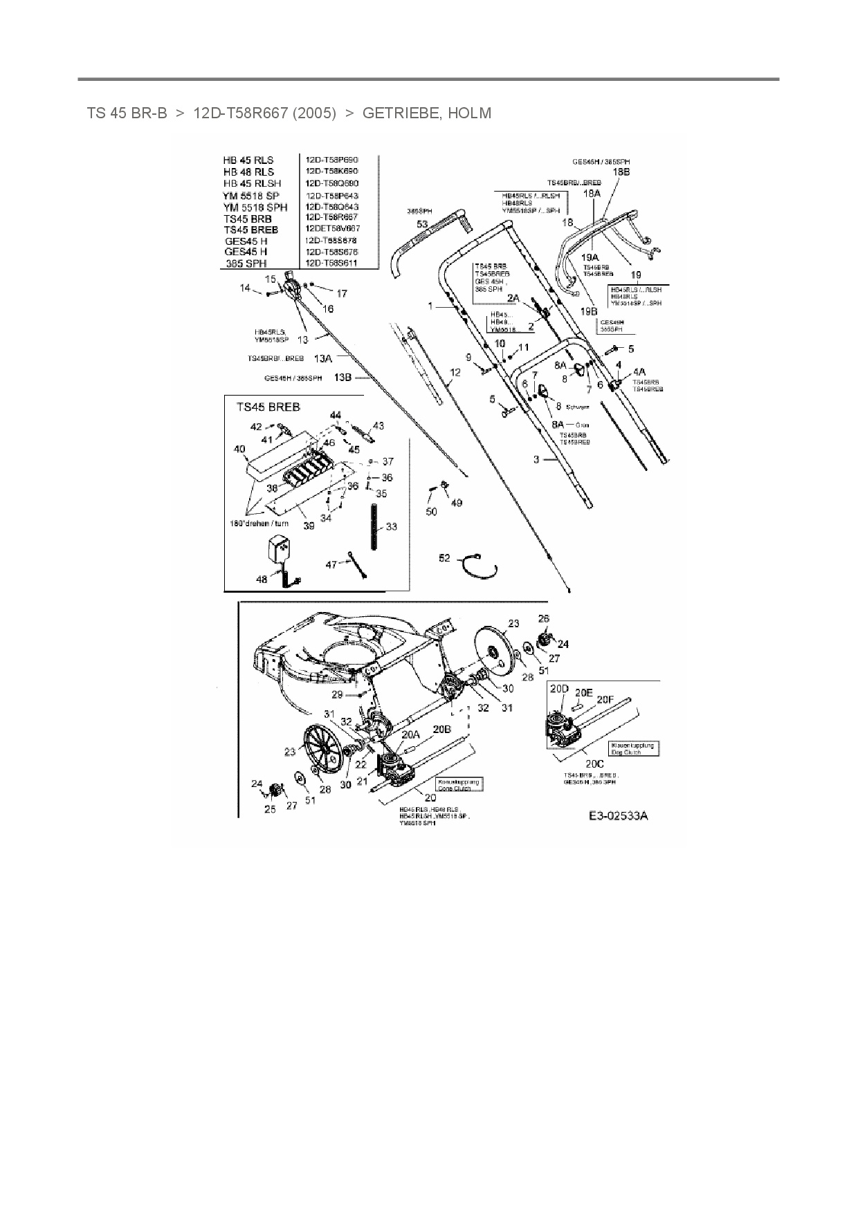 Die Ersatzteil-Zeichnung für Motormäher mit Antrieb Turbo-Silent TS 45 BR-B als Download: