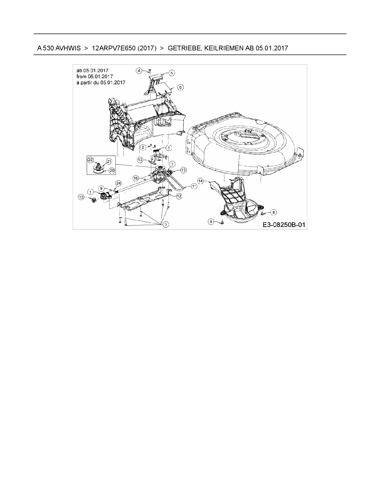 Ersatzteile für Motormäher mit Antrieb Wolf-Garten A 530 AVHWIS aus der Zeichnung Getriebe, Keilriemen ab 05.01.2017: