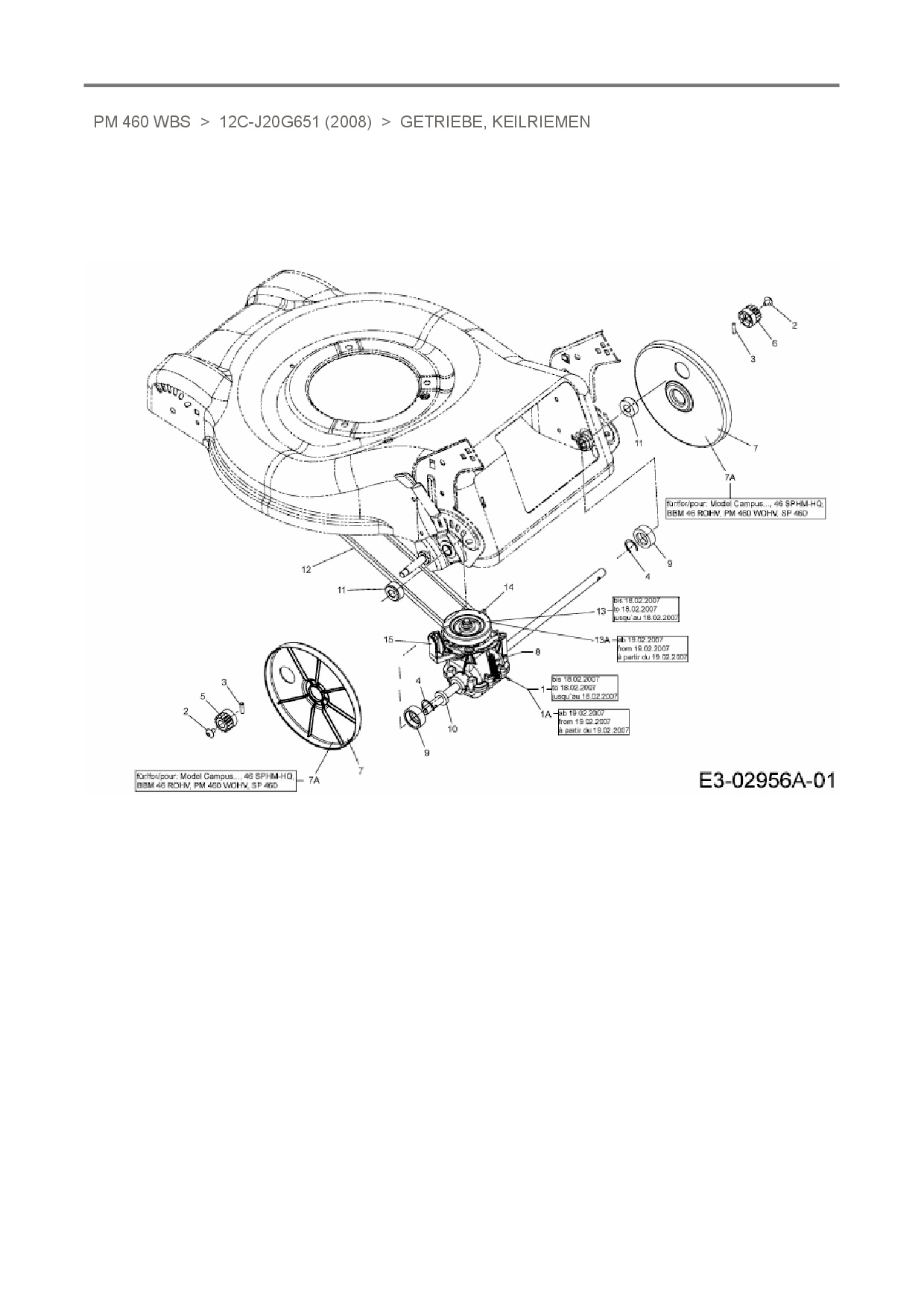 Ersatzteile für Motormäher mit Antrieb Terradena PM 460 WBS aus der Zeichnung Getriebe, Keilriemen: