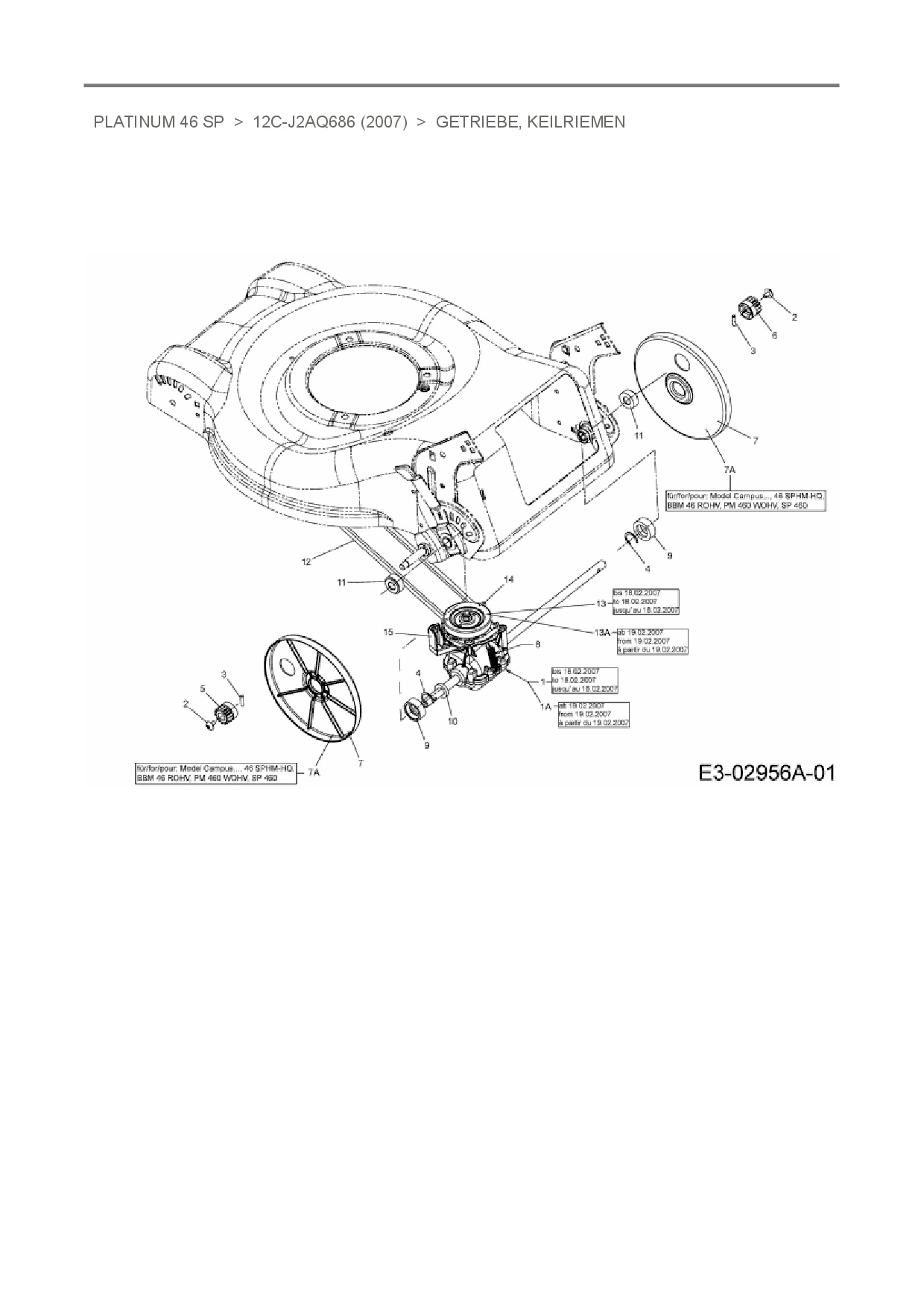 Ersatzteile für Motormäher mit Antrieb MTD Platinum 46 SP aus der Zeichnung Getriebe, Keilriemen: