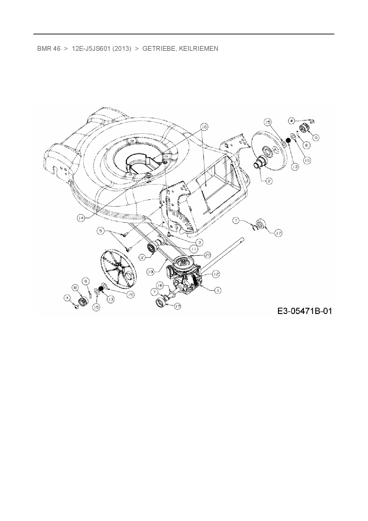 Ersatzteile für Motormäher mit Antrieb Plantiflor BMR 46 aus der Zeichnung Getriebe, Keilriemen: