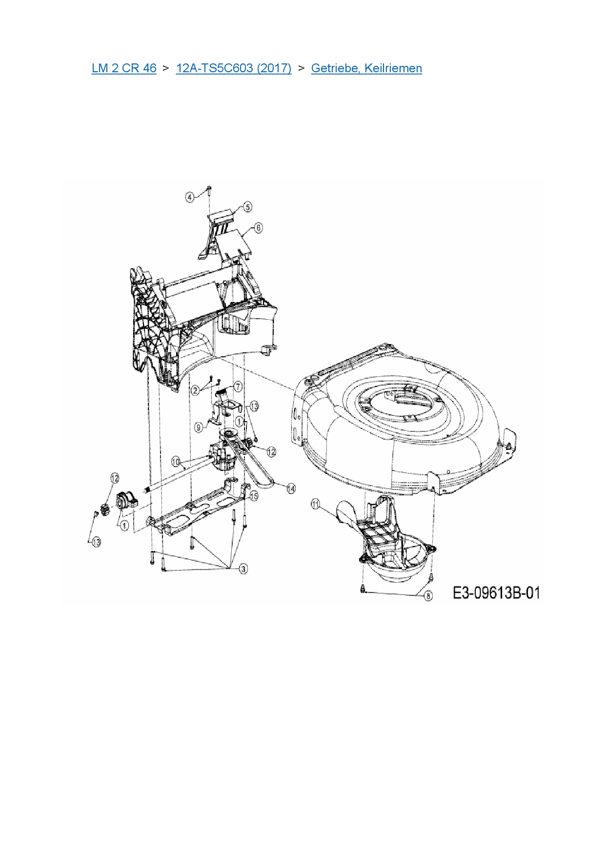 Ersatzteile für Motormäher mit Antrieb Cub Cadet LM 2 CR 46 aus der Zeichnung Getriebe, Keilriemen: