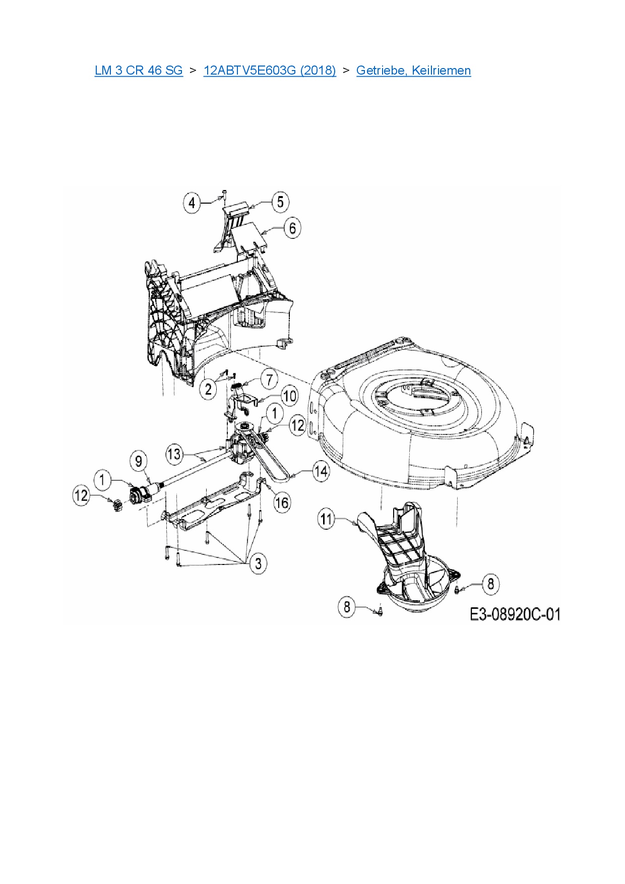 Ersatzteile für Motormäher mit Antrieb Cub Cadet LM 3 CR 46 SG aus der Zeichnung Getriebe, Keilriemen:
